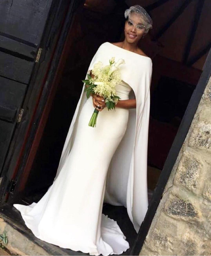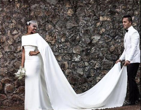 African Mermaid Wedding Dresses Black Girl With Cape Zipper Back Sweep Train Arabic Bridal Gowns