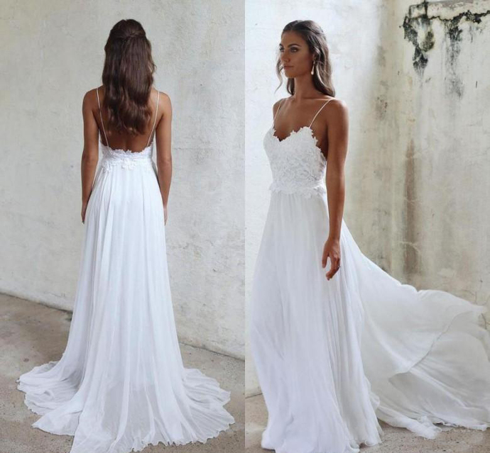 2025 Custom Made Simple Beach Wedding Dresses Boho A Line Sleeveless Lace Applique Backless Bridal Gowns Court Train