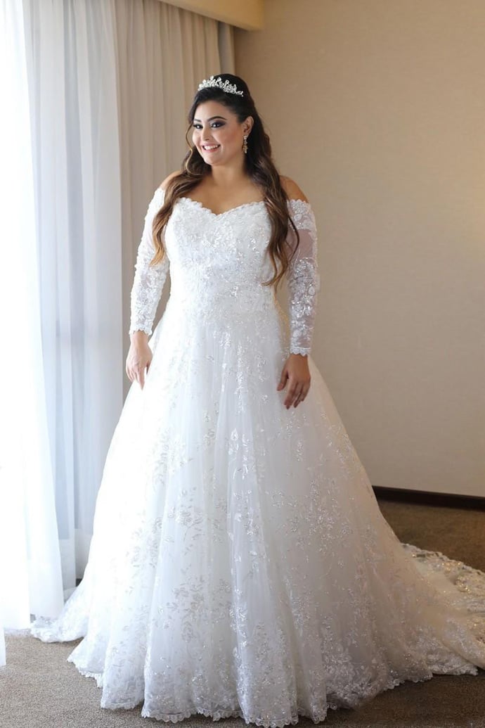 Long Sleeve Plus Size Wedding Dresses Off Shoulder Sparkly Sequined Appliques Lace A Line See Through Back Bridal Gowns Custom Size