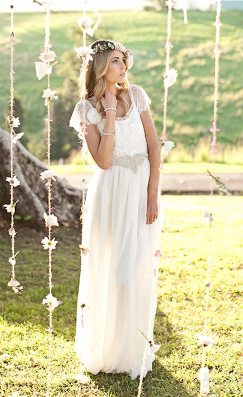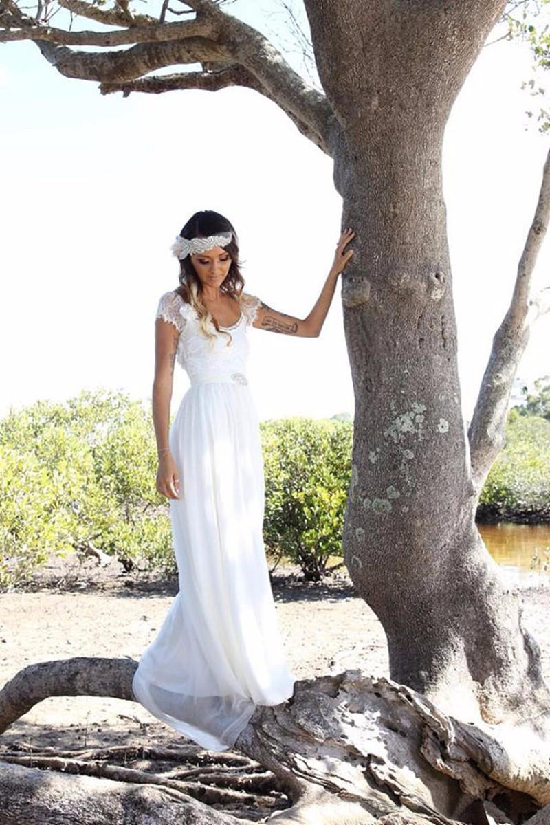 Wedding Dress Vestidos De Novia Para Playa Sexy Backless White Chiffon Long Wedding Dresses with Short Sleeves