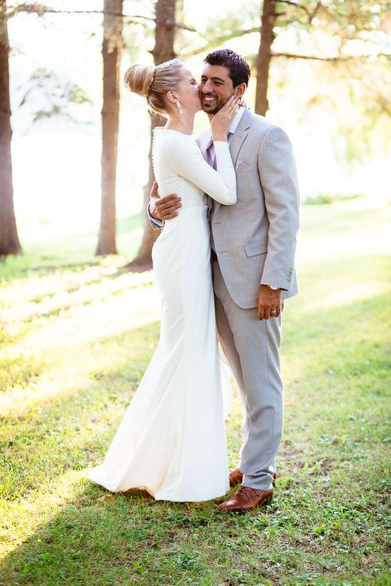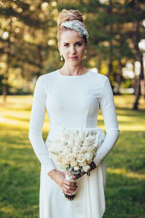 Plain Long Sleeve Mermaid Wedding Dresses Jewel Satin Garden Country Beach Bridal Gowns vestido de novia Plus Size