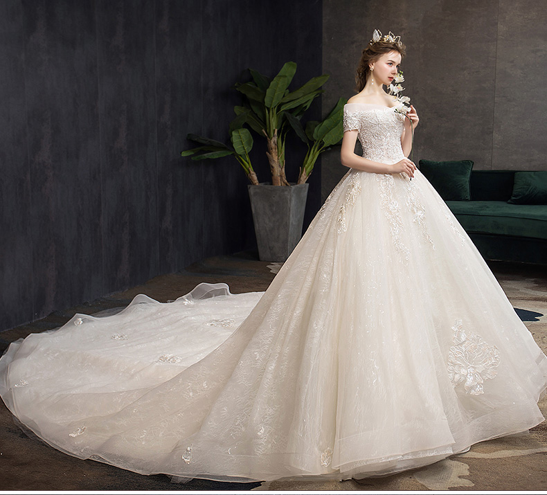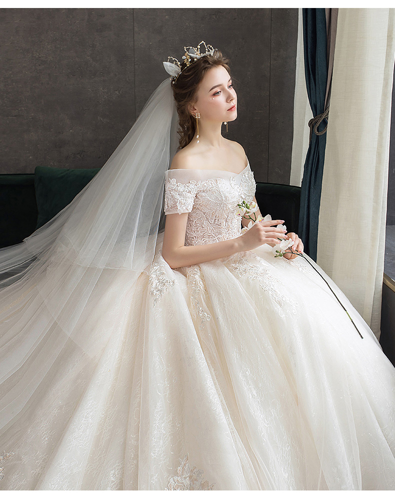 French Light Wedding Dress Bridal Gown Luxurious Wedding Dress Champagne Long Train Wedding Dress