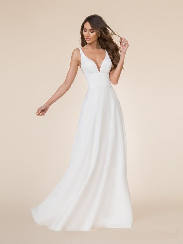 Summer Beach Wedding Dresses A Line V Neck Satin Button Back Custom Made Bridal Gowns