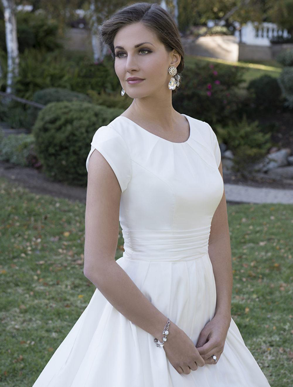 Vintage Simple A-line Satin Modest Wedding Dresses With Cap Sleeves Puffy Buttons Back Formal Garden Country Wedding Gowns Bridal Dress