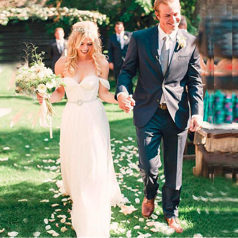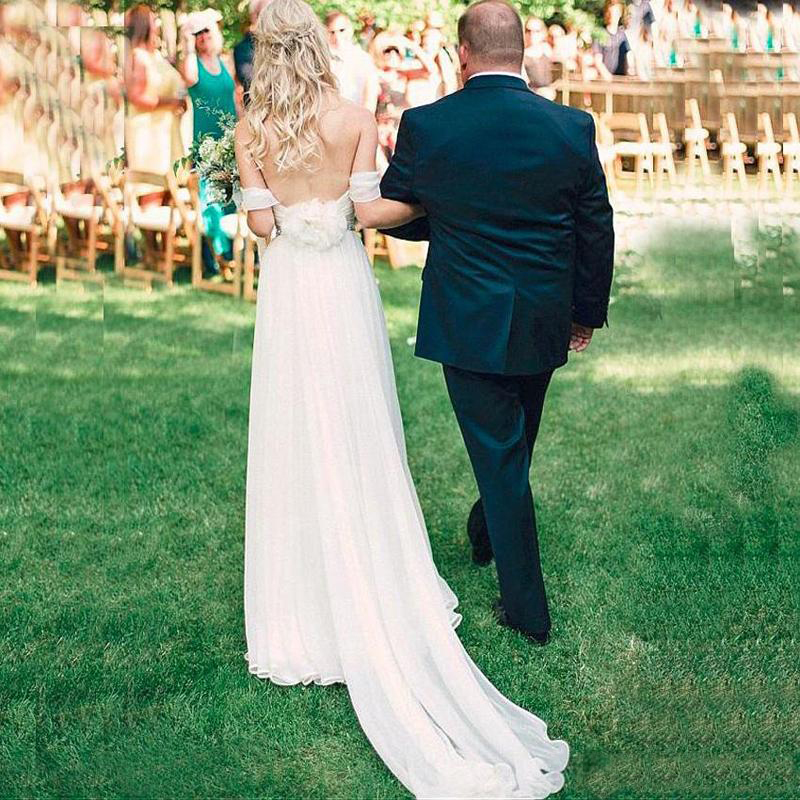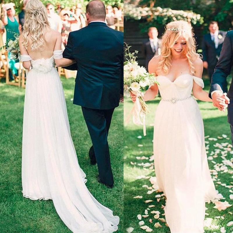 Summer Garden Boho Wedding Dresses A Line Off Shoulders Pleats Long Bridal Gowns For Western Country Weddings