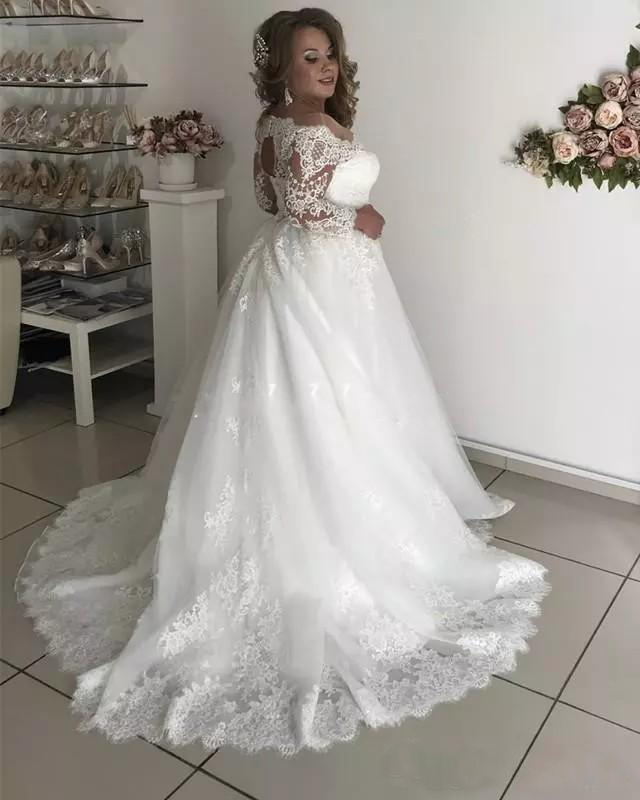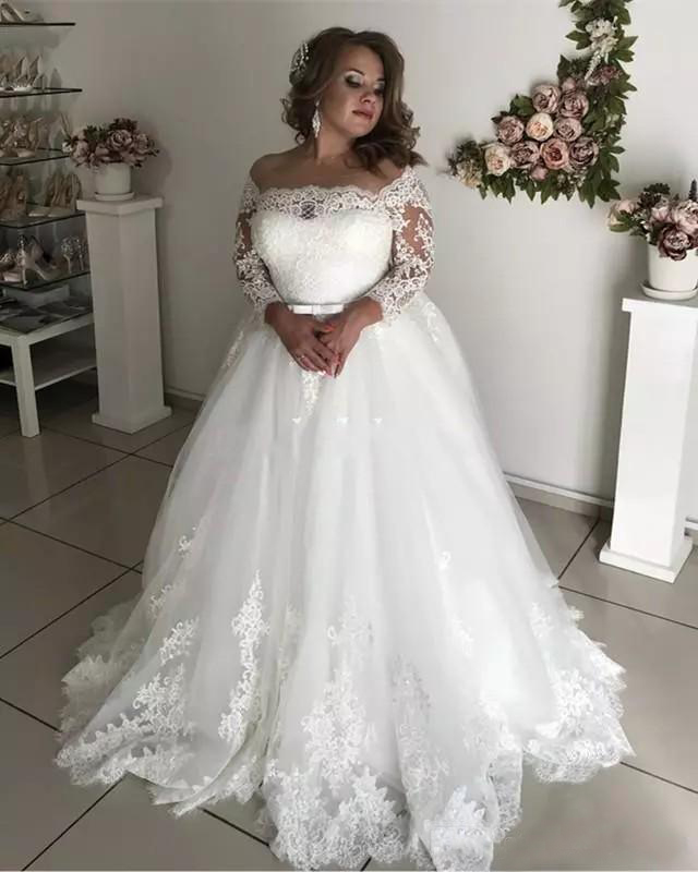 Modest Plus Size Wedding Dresses Sheer Neck 3 4 Long Sleeve Appliques Illusion Hollow Back Garden Country Bridal Gowns robe
