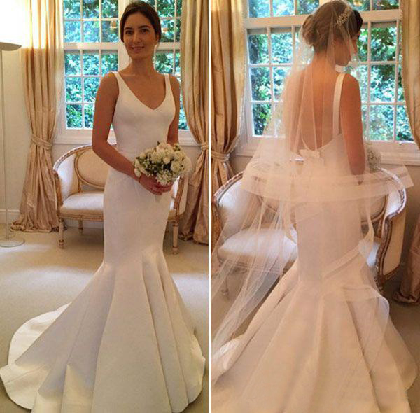 Simple Plain Satin Mermaid Wedding Dresses Sexy Backless Sleeveless V Neck Floor Length French Bridal Gowns