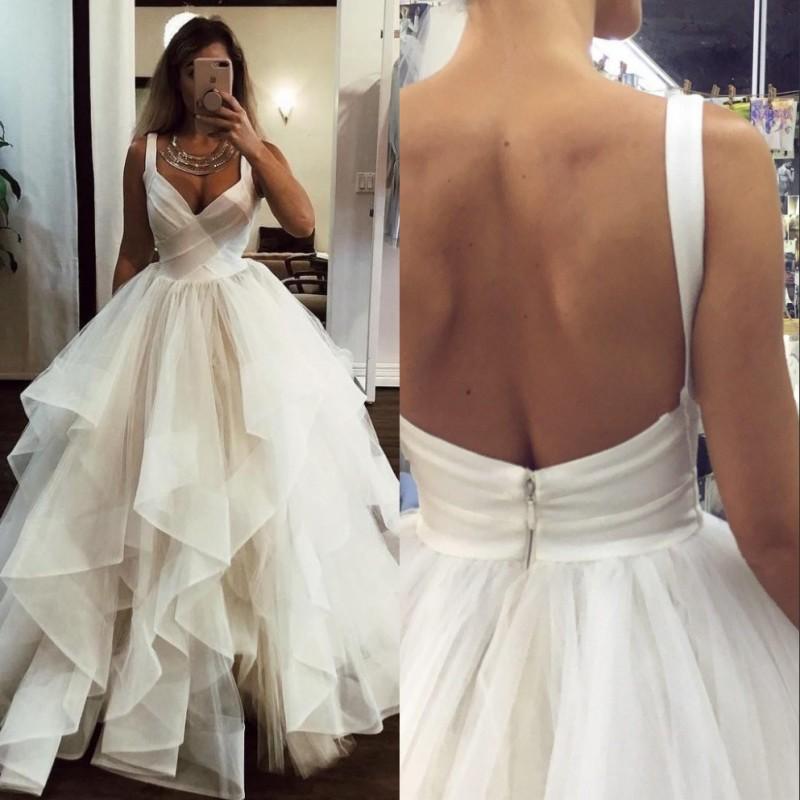 New A Line Wedding Dresses Ruffles White Princess Wedding Gowns Bride Bridal Gowns Custom Made Size