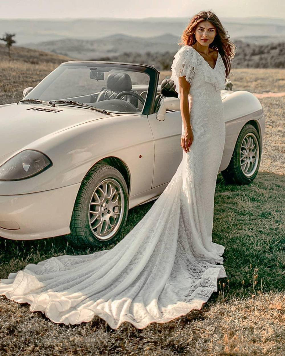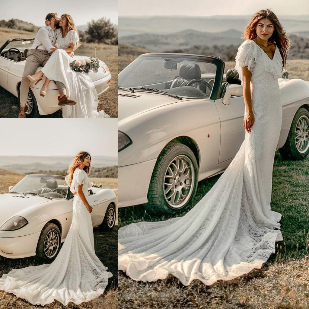 2025 Spring Summer New Garden Bohemian Wedding Dresses Lace Mermaid V Neck Sleeves Boho Robe de mariee