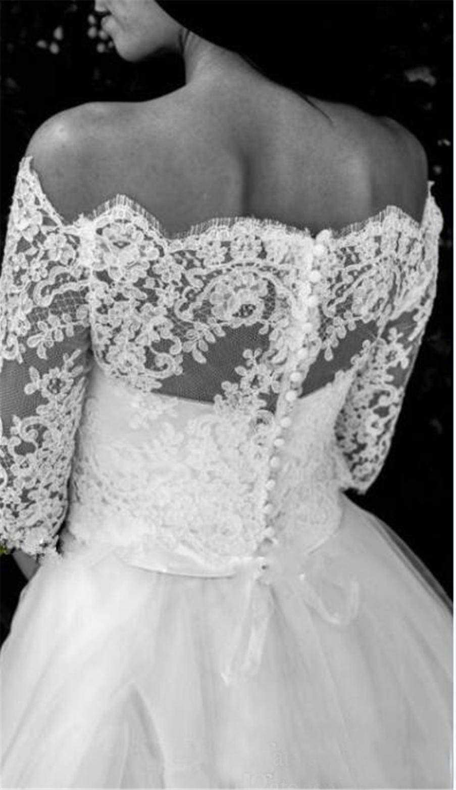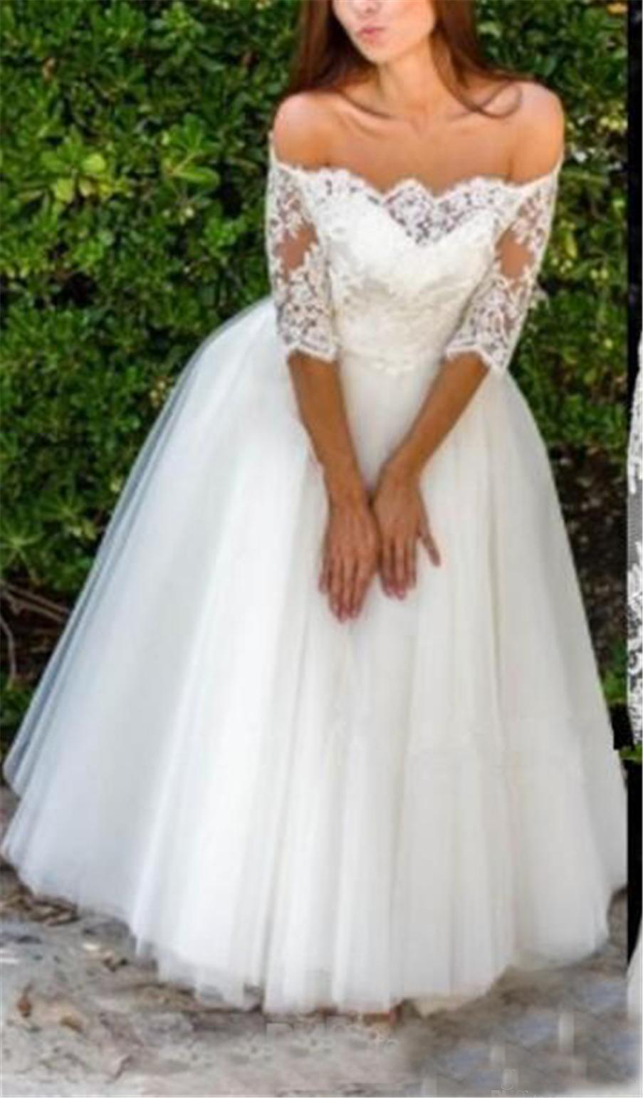 Half Sleeve Off Shoulder Lace Tulle A Line Bridal Gowns Vintage Ankle Length Wedding Dresses vestido de noiva Custom Made
