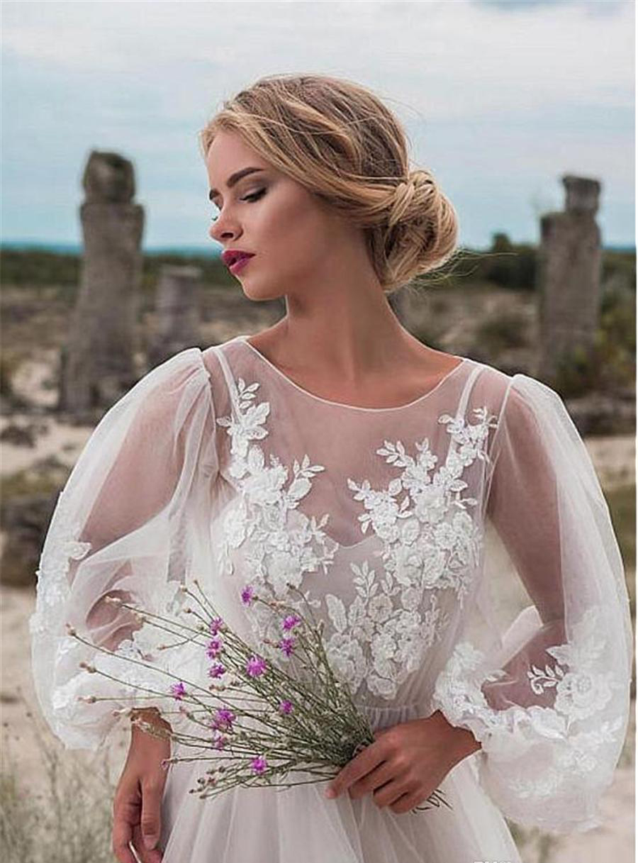 Fabulous Tulle Jewel Neckline Natural Waistline A-line Wedding Dress With Beaded Lace Appliques embellished beaded lace Bridal Dresses