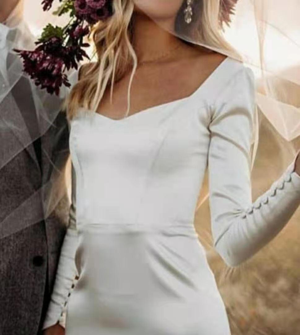 Elegant Long Sleeves Sheath Wedding Dresses Boho Garden Simple Satin Court Train Bridal Gowns Plus Size Marriage robes de mariée