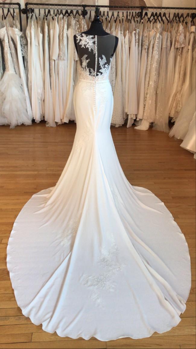 White Sheer Neckline Mermaid Wedding Dresses with Sequined Lace Appliques Bridal Dresses with Court Train vestidos de novia