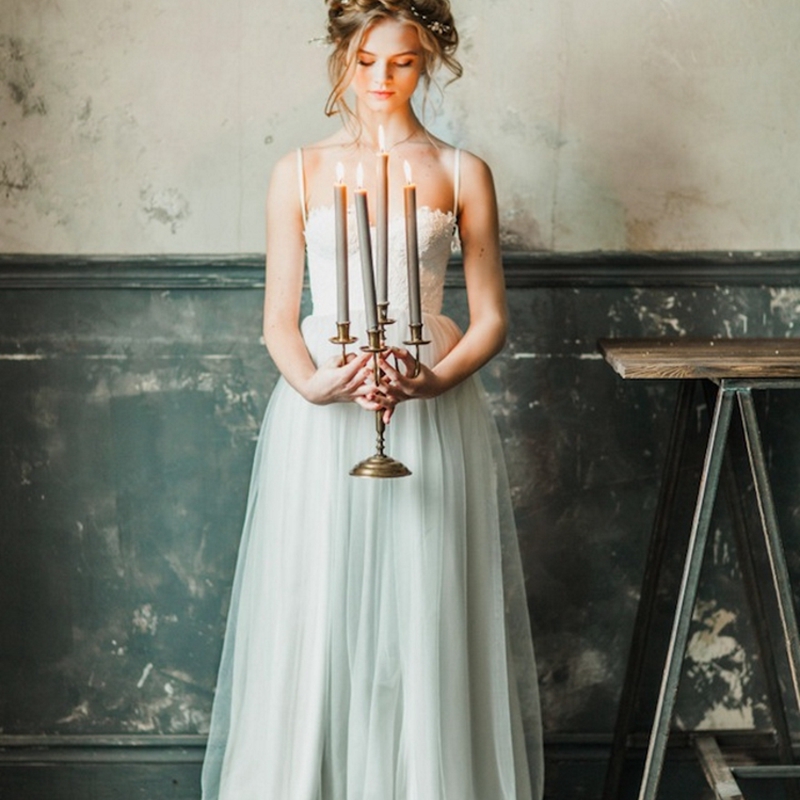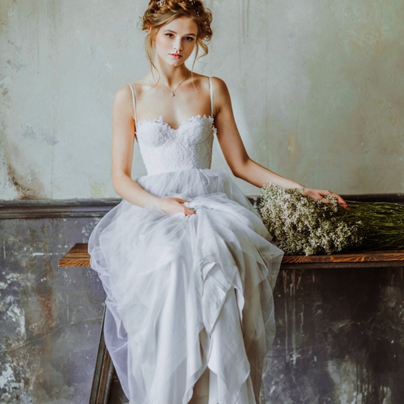 A Line Fairy PrincessTulle Wedding Dress Bride Dress Spaghetti Straps Stage Costume Gown Hand Made