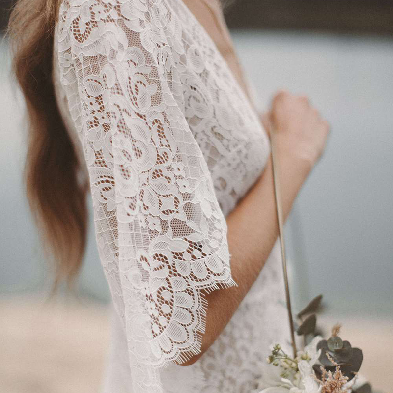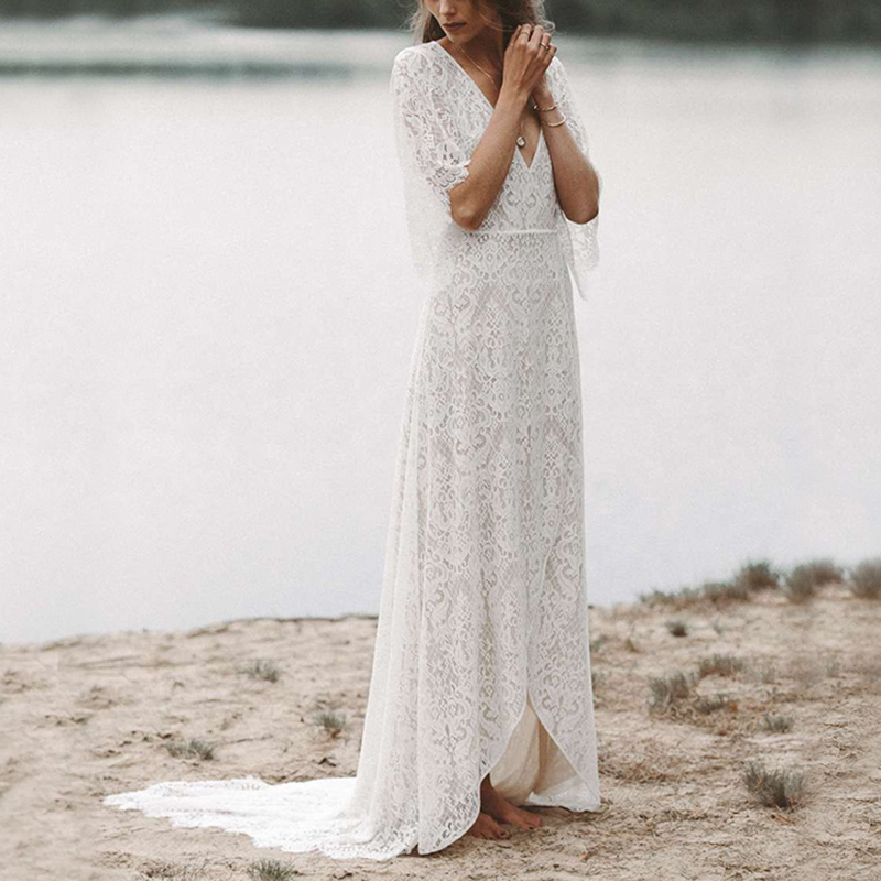 Bohemian Lace Boho Pre Wedding Dress Beach A Line Batwing Sleeves V Neck High Low Bridal Photoshoot Bridesmaid Gowns Custom Made