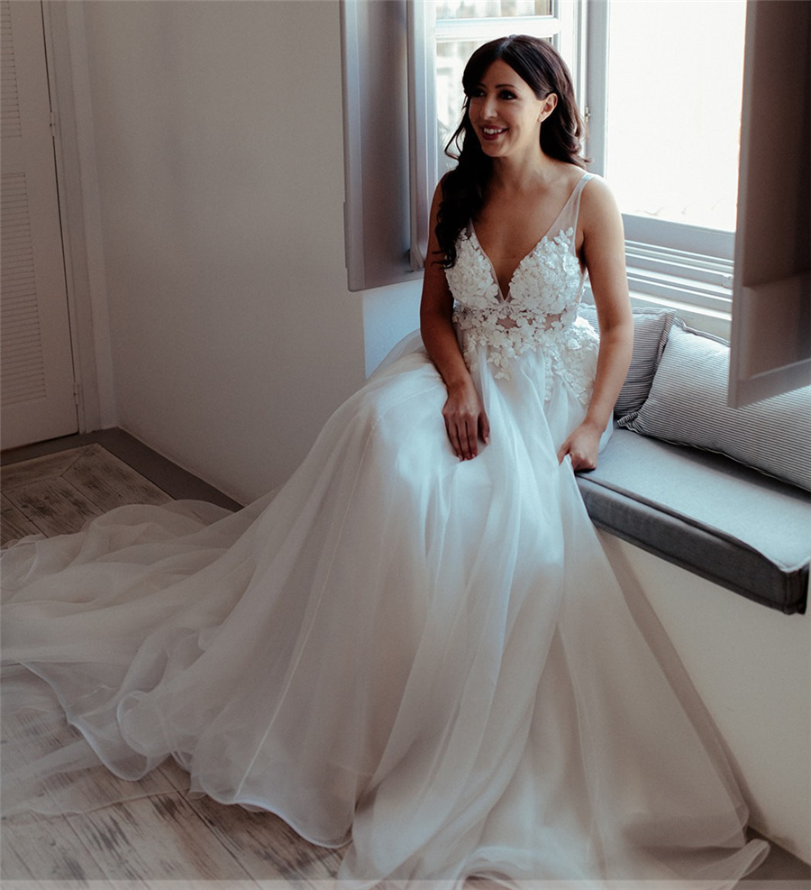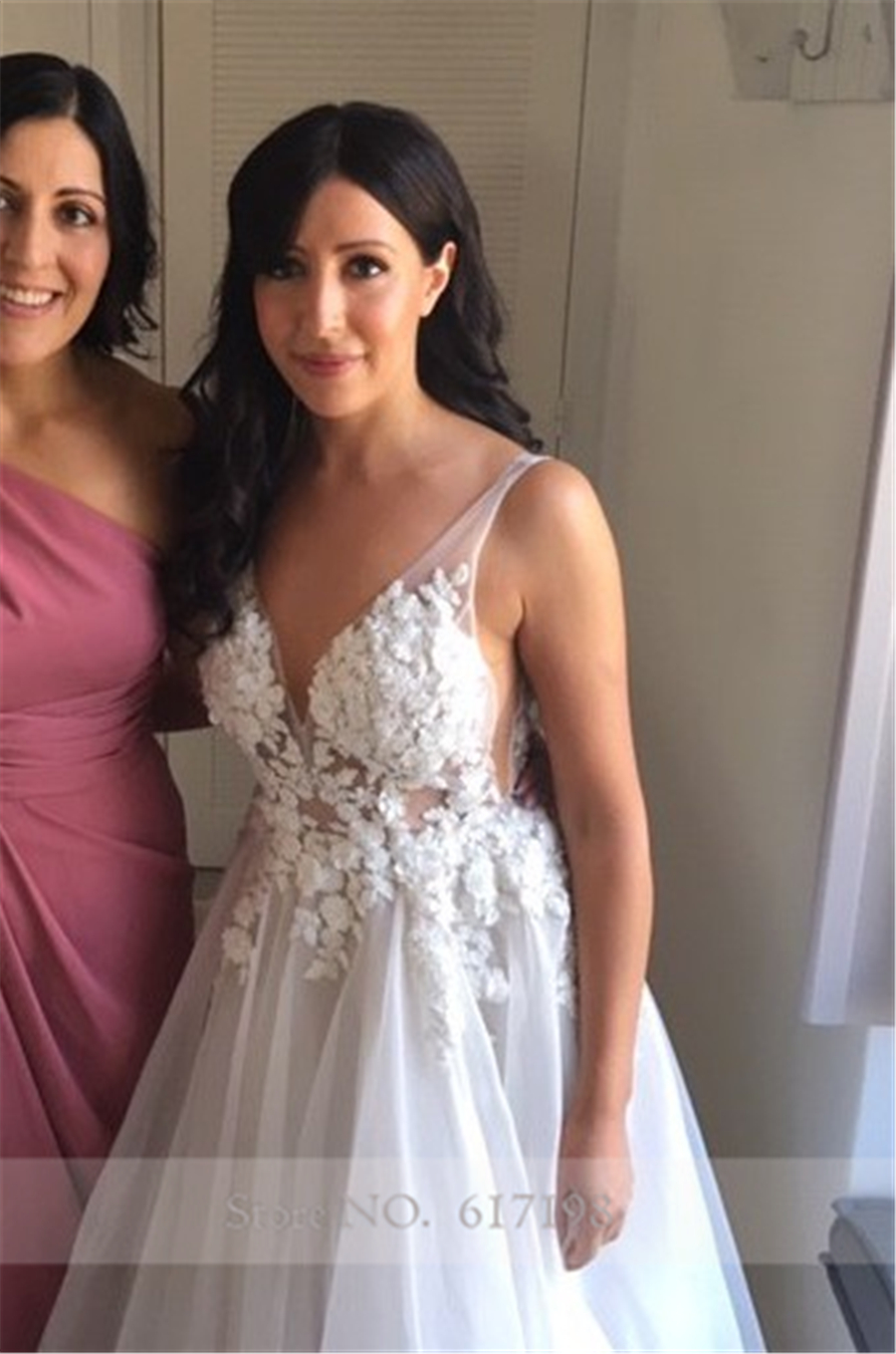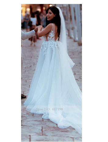 Sheer Spaghetti Straps Sexy A-line Elegant Backless Bridal Dresses robes de mariee robe de mariages Bridal Dress Tulle