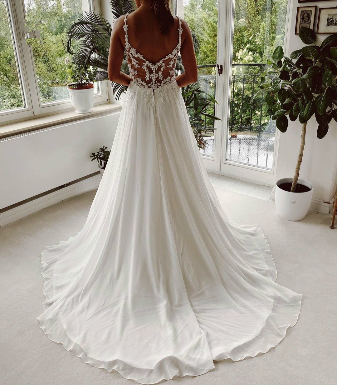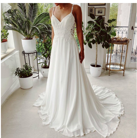 Beach Wedding Dresses Spaghetti Strpas Backless V-neck Appliques Beaded A-line New Chiffon Bridal Gown Vestidos De Novia