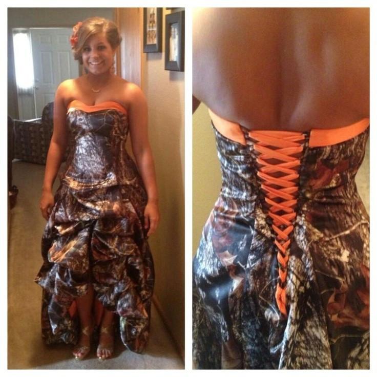 Fashion Cheap Realtree Camo Wedding Dresses Vestidos de Novia Sweetheart Hi Lo Ruffles back Corset Elegant orange Bridal Gowns