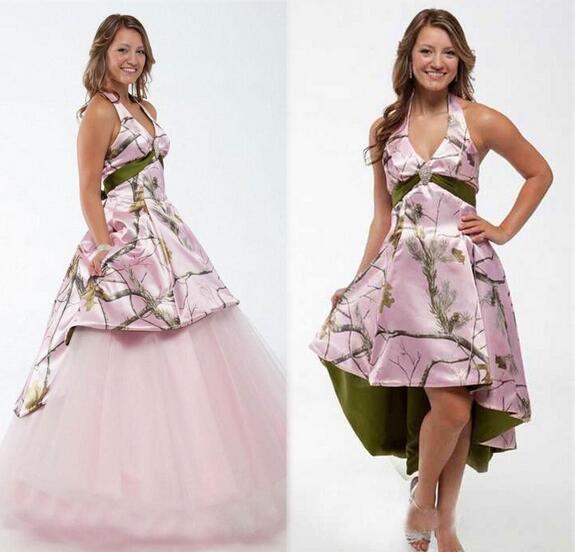 Pink Camo Vitnage Wedding Dresses Sheer Tulle Stain Ribbon A-line Halter Back Zipper two Piece Elegant Vestidos de Novia Bridal Gowns