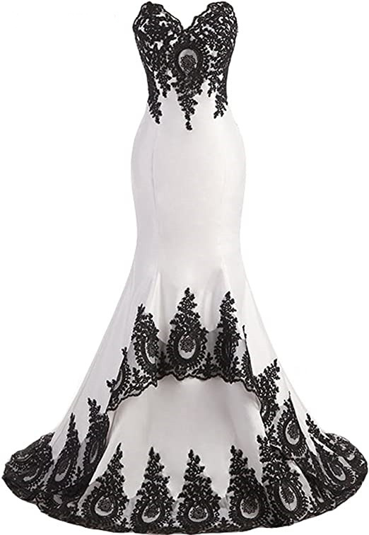Sexy V-neck Mermaid Wedding Dresses For Women Robe De Mariee Formal Black Appliques Court Train Satin Bridal Gown Bride Dresses