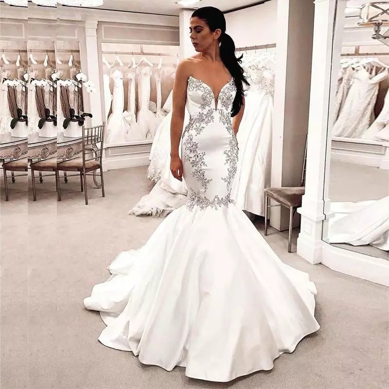 Sweetheart Mermaid Wedding Dress 2023 Robe De Soirée De Mariage Luxury Appliques Court Train Formal Bridal Gowns