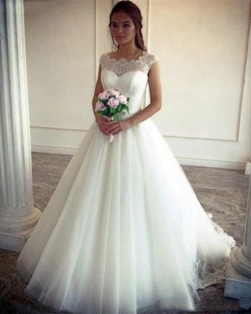 Sheer Neck A-Line Wedding Dress 2023 Vestidos De Novia Fashion Appliques Floor-Length Formal Wedding Bride Dress