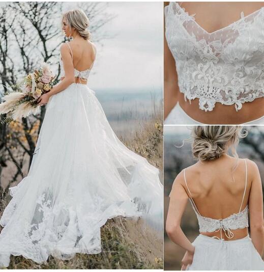 Sexy Spaghetti Straps Crop Top Wedding Dress, Romantic Bridal Separates