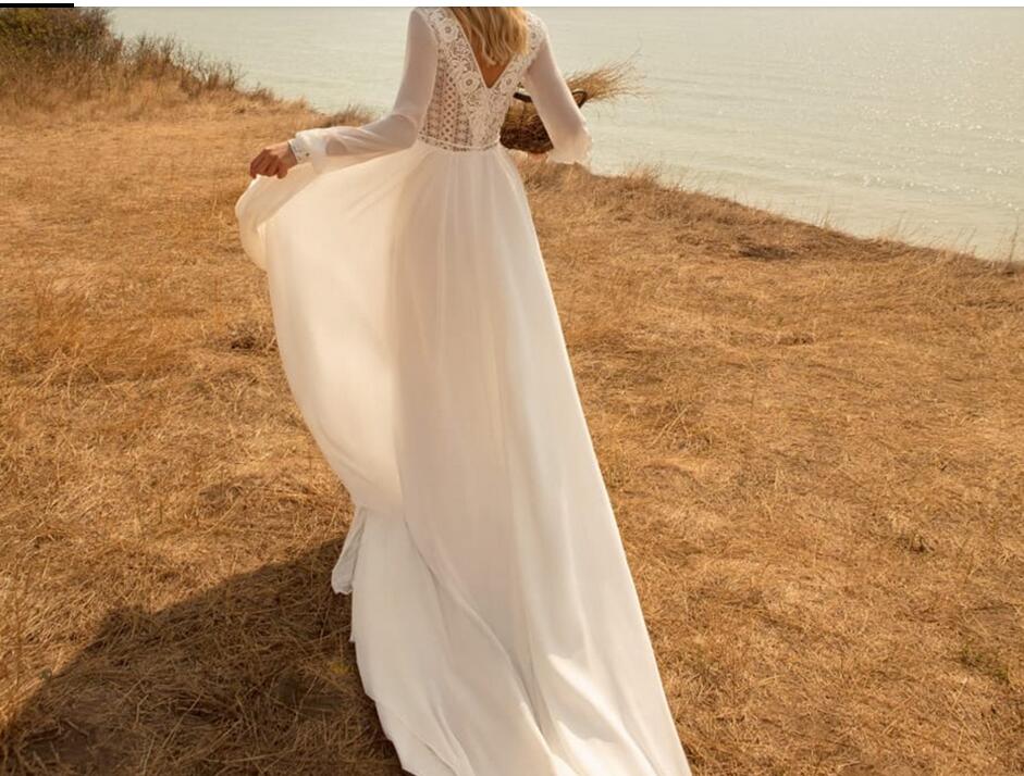 New Wedding Dress Sexy Lantern Sleeves Double V Neck Lace Applique Bohemian Bridal Gown Robe De Mariee