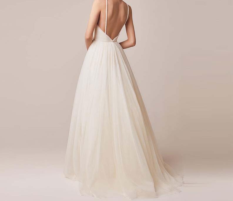 Sexy Spaghetti Straps Tulle Wedding Dress Vestido De Novia Sleeveless V-neck Backless Bride Dresses Robe De Mariage