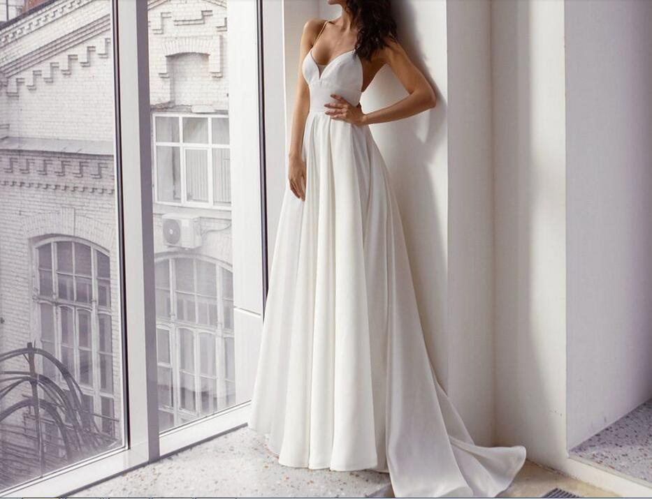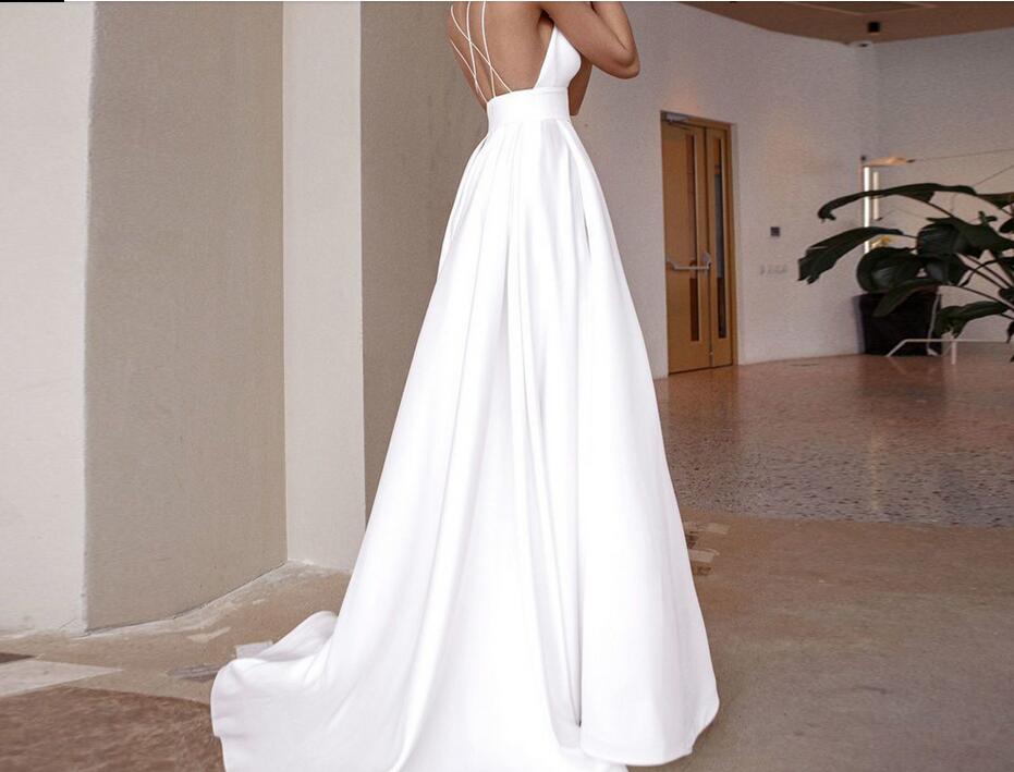Sexy Halter Sleeveless Simple Wedding Dress Custom Made Plain A Line Satin Long Bridal Gown Robe De Mariee