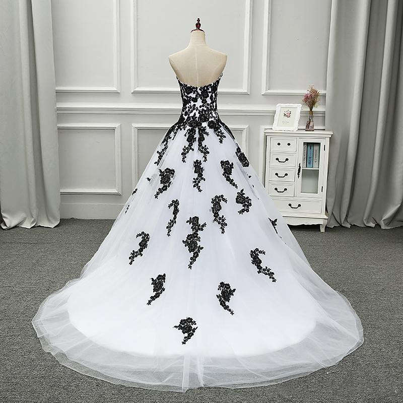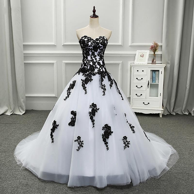 White and Black Ball Gown Gothic Wedding Dress 2018 Sweetheart Dropped Waist Women Vintage Non White Bridal Gown