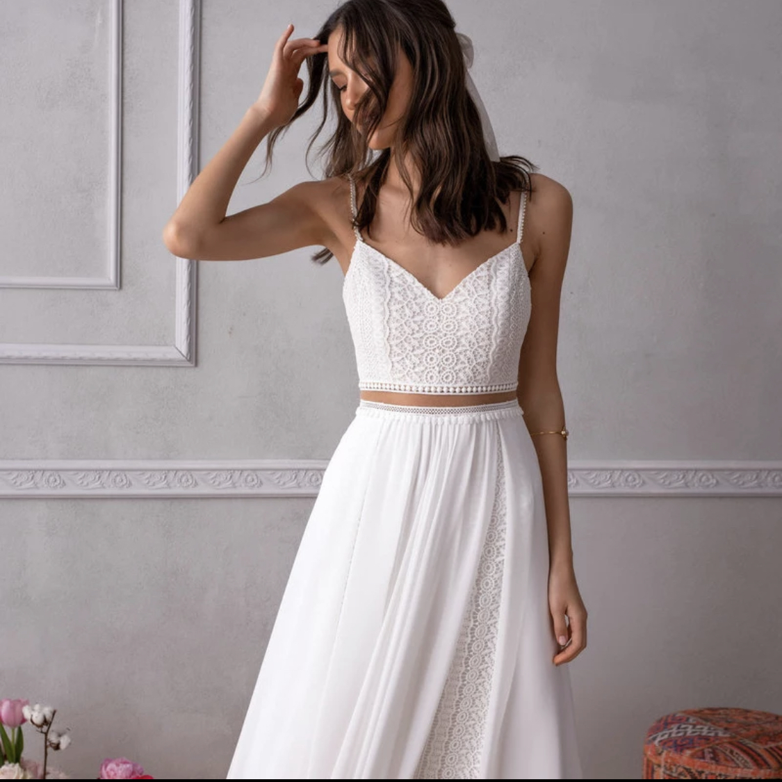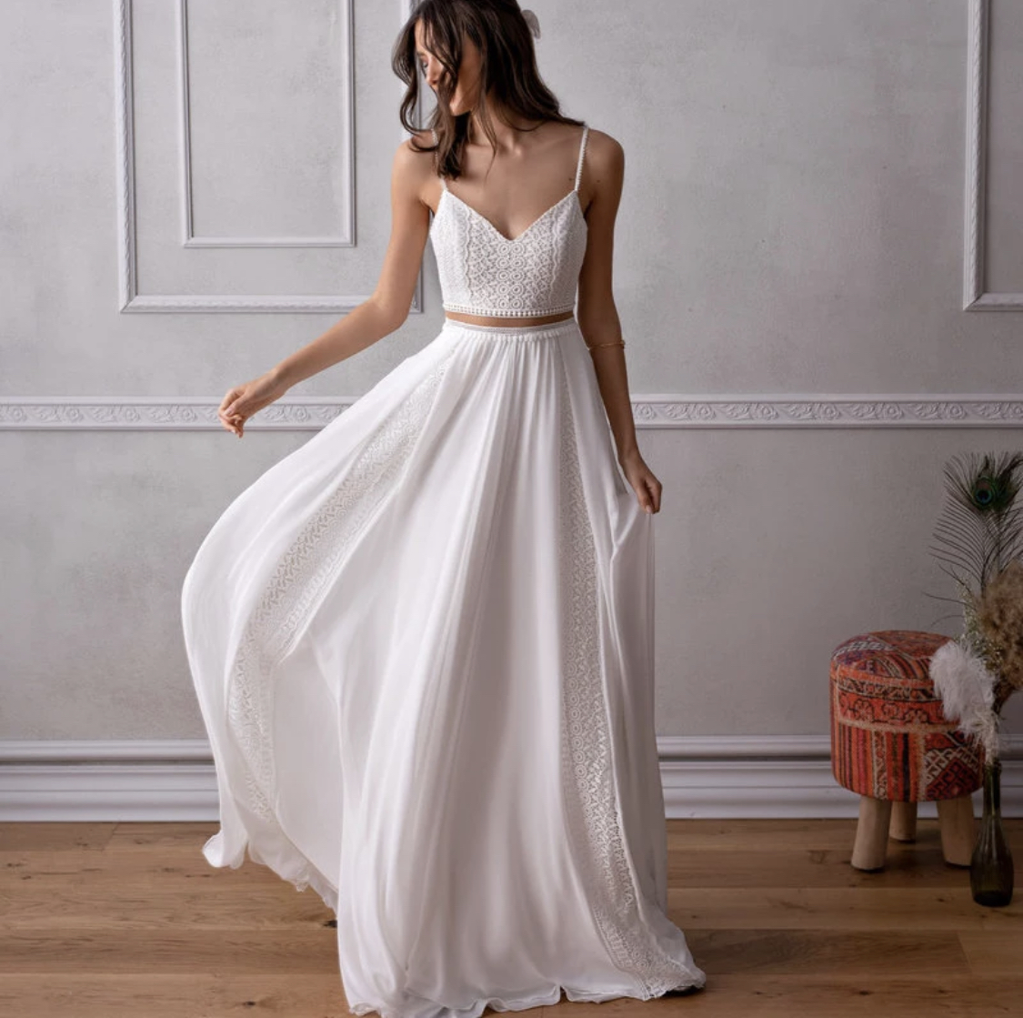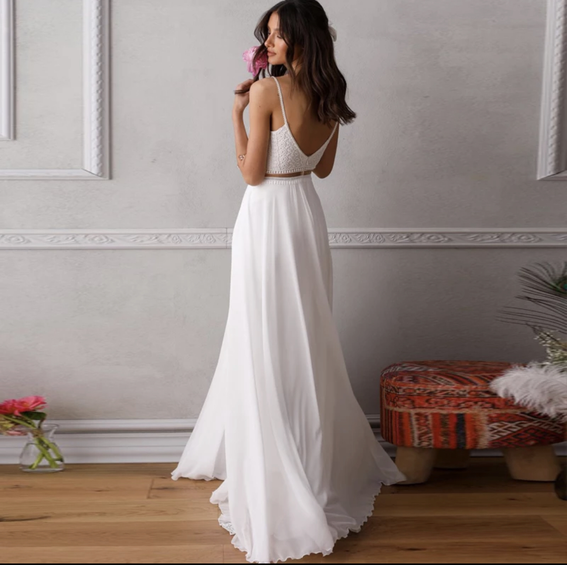 Simple Boho Wedding Dresses 2 Pieces A-Line Spaghetti Straps Backless Wedding Dress