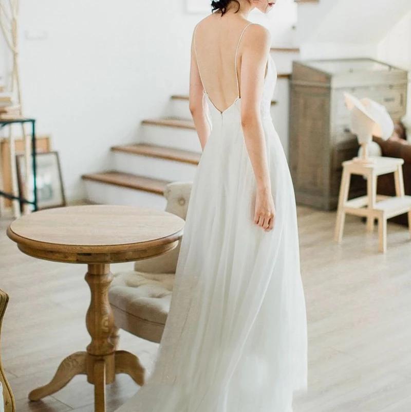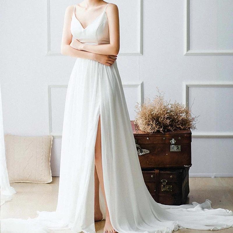 Simple Boho Spaghetti Straps Wedding Dress Backless Chiffon A Line Bridal Gowns Sumemr Beach Sexy High Split robes de mariée Fashion Garden