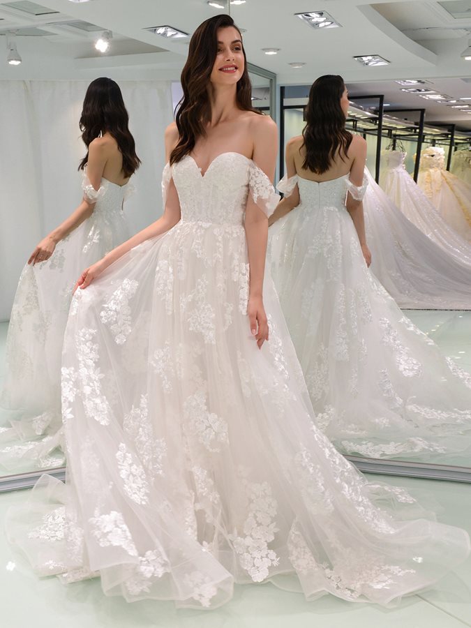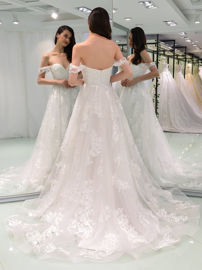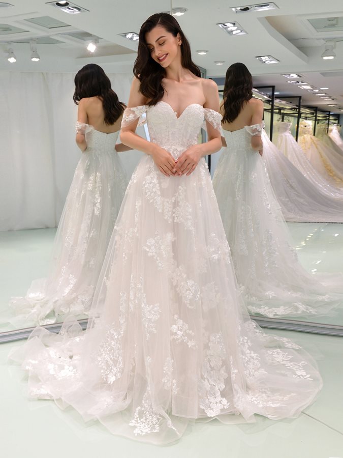 Sexy Off Shoulder Applique A Line Wedding Dress Bridal Dresss