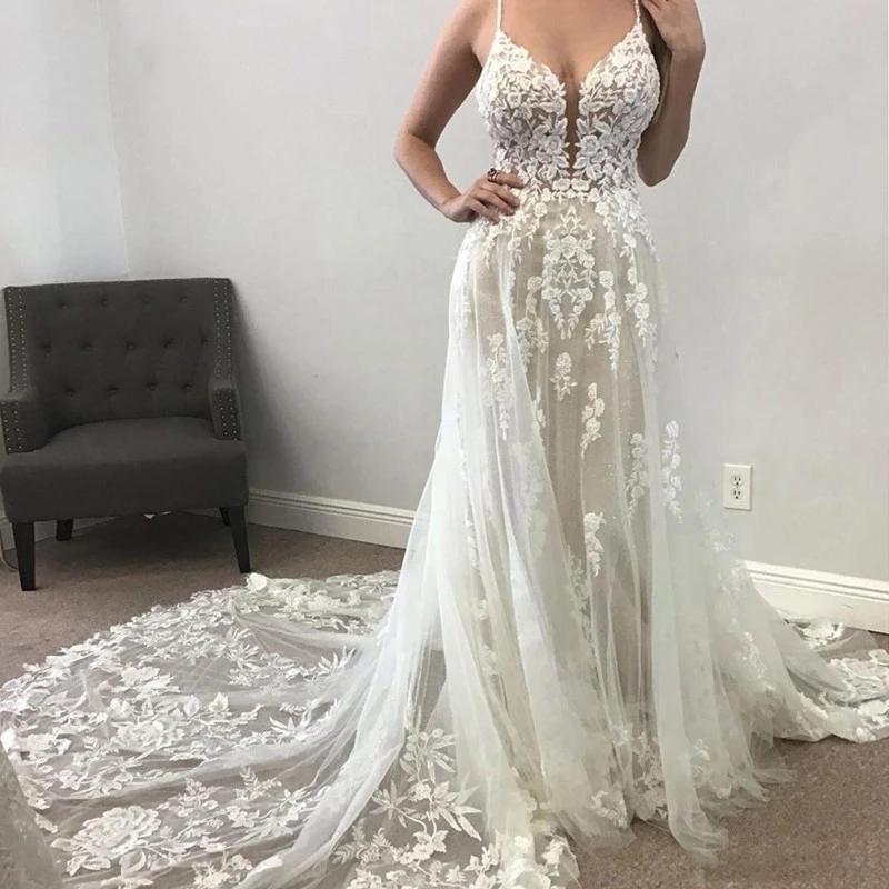 Modern Deep V neck Memaid Wedding Dress Tulle Backless Wedding Dress
