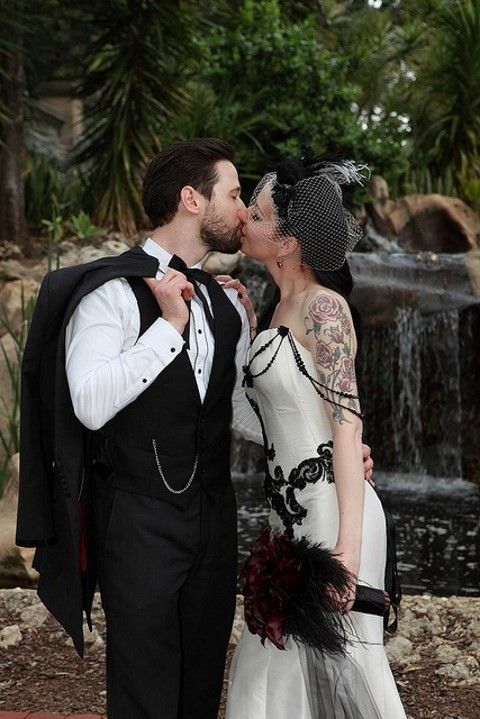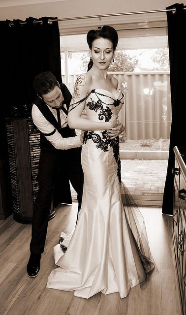 Unique Vintage Gothic Black and White Wedding Dress Mermaid Appliques Bridal Dress