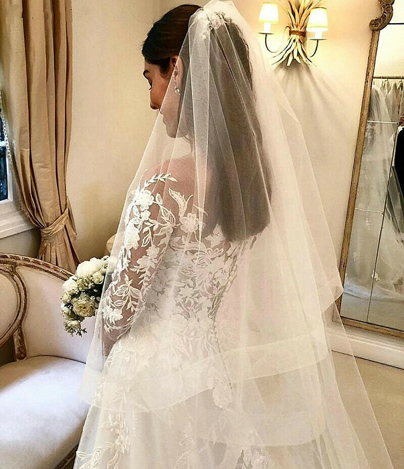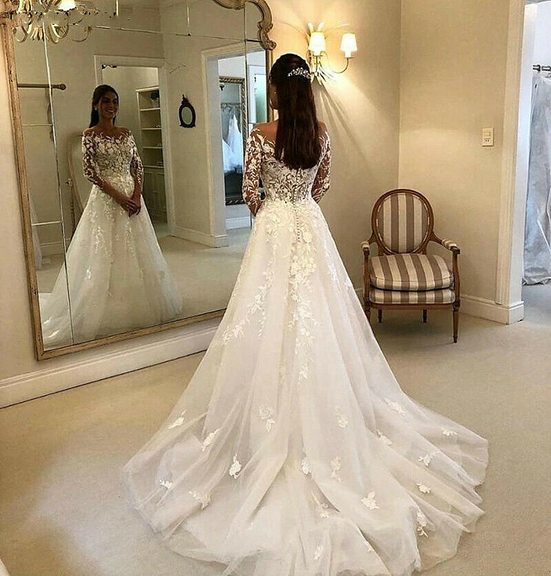 Boho Lace Wedding Dresses Long Sleeve Tulle Appliques Sweep Train Bridal Gown Wedding Dress