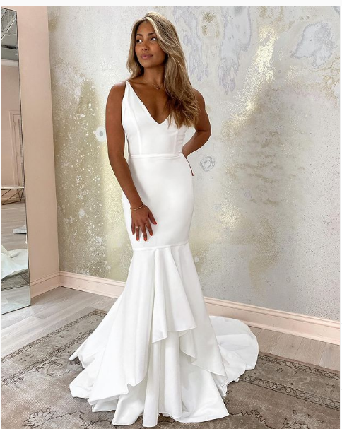 Sexy Mermaid Wedding Dress, Deep v-neck Bridal Dress, Satin Wedding Gown Bridal Dress