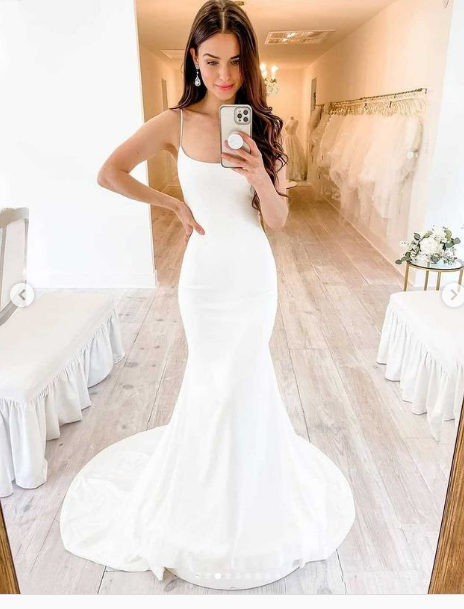 Sexy Wedding Dress, Mermaid Spaghetti Straps Bridal Dress, Satin Wedding Gown Bridal Dress
