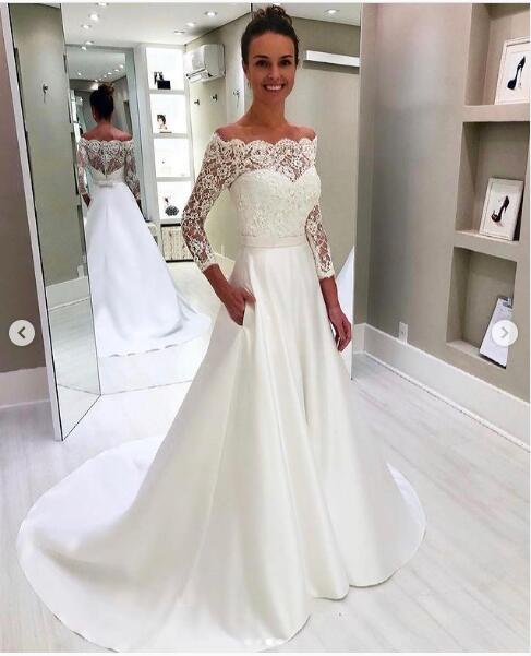 Elegant Wedding Dress Strapless Wedding Dress Lace Bodice Satin Wedding Gown Bridal Dress