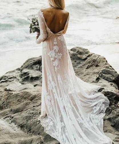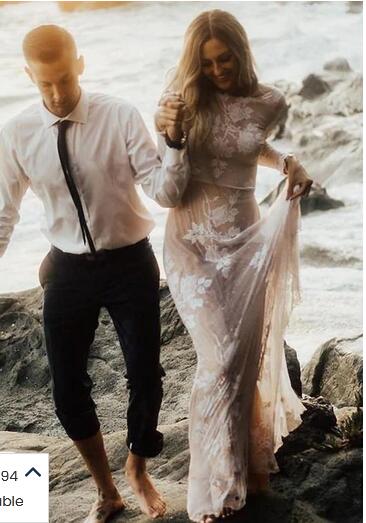 Sheath Rustic Lace Beach Wedding Dress With Long Sleeve Bridal Wedding Dresses
