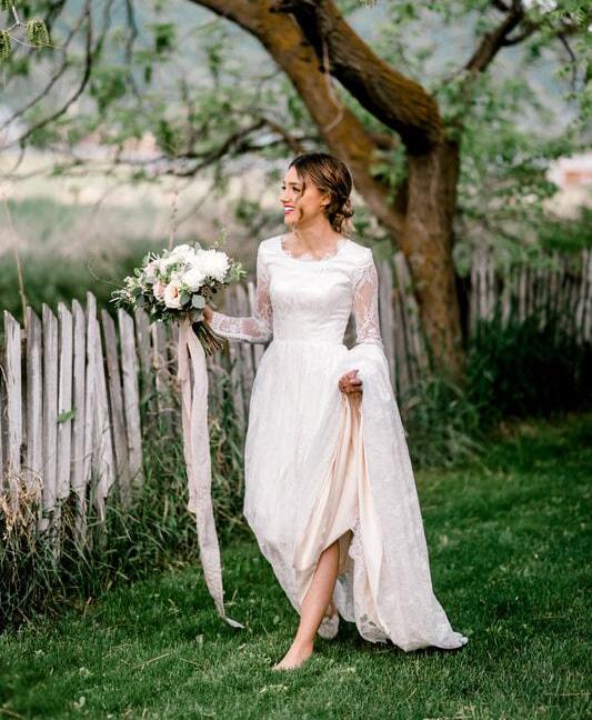 Vintage Lace A-line Modest Wedding Dress With Sheer Long Sleeves Wedding Gown