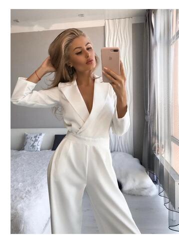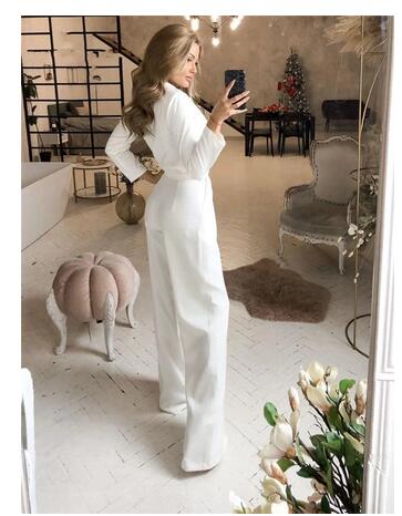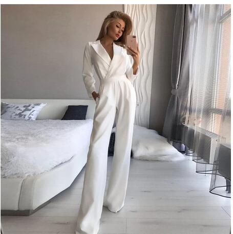 Elegant Simple Jumpsuit Wedding Dress 2021 For Female Deep V-Neck Full Sleeves Illusion Stain Pantsuit Bride Vestidos De Noiva