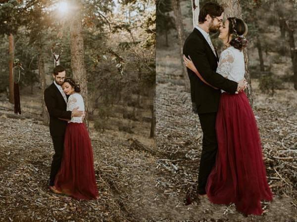 Cheap Burgundy Tulle Country Wedding Dresses A Line Short Sleeves Lace Bridal Gowns Plus Size Two Pieces Dress