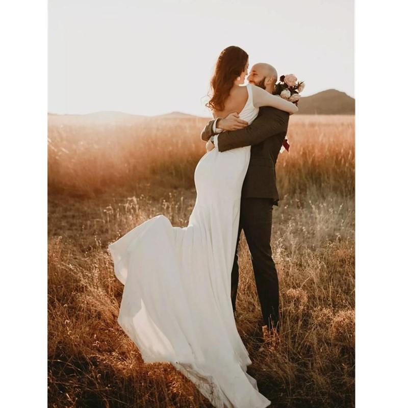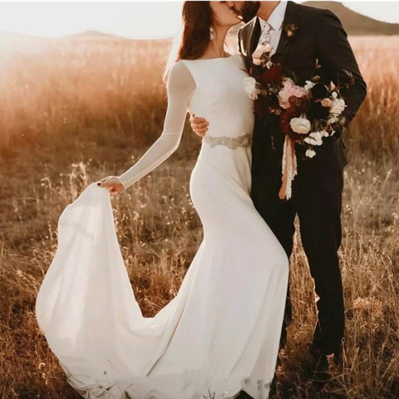 Bohemian Bride Wedding Dresses Long Sleeve Open Backless Crystals Beading Waist Mermaid Bridal Gown