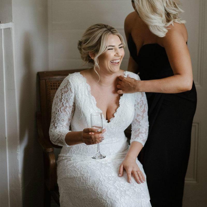 Plus Size Full Lace Mermaid Wedding Dresses V Neck 3/4 Sleeve Country Bridal Dress Zipper Back