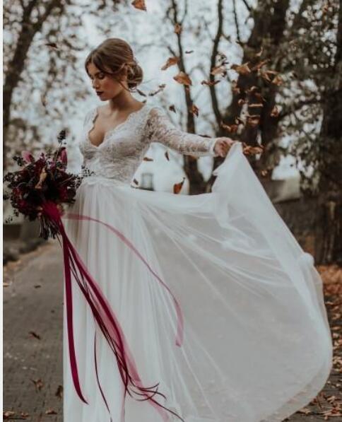 Wedding Dress vestido noiva Sleeves V-Neck Long Beach Bridal Gowns Floor Length Appliques