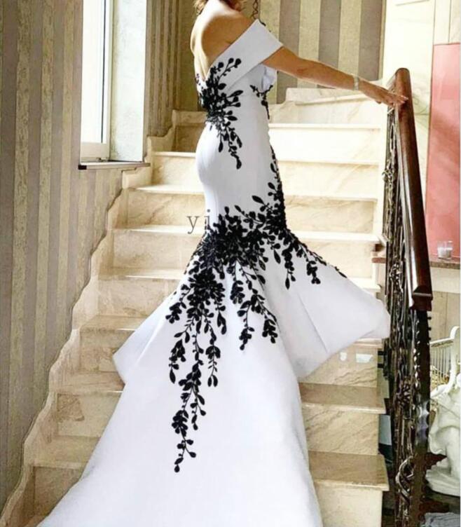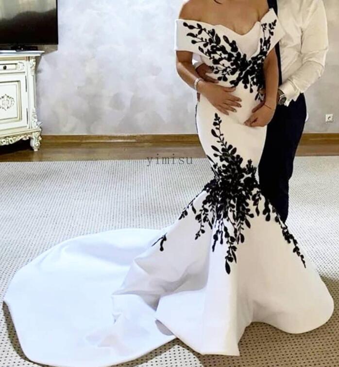 White Meramid Evening Dresses Off Shoulder Backless Wedding Dress