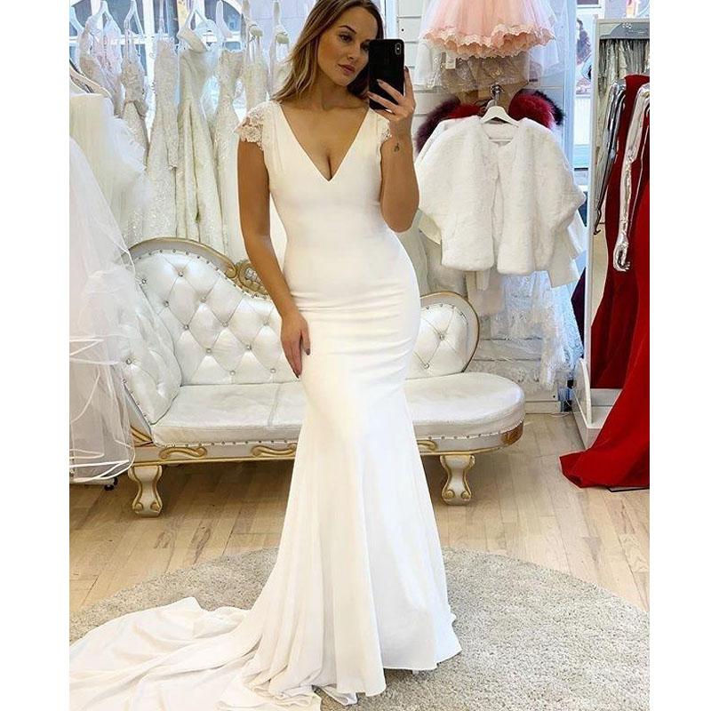 Elegant Long Wedding Gowns Open Back Summer Beach Wedding Wear Ivory Chiffon Mermaid Wedding Dress