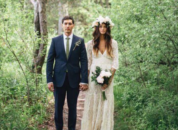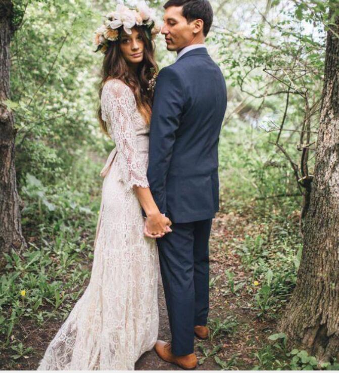 Vintage-Inspired Hippie Maxi Crochet Lace Bohemian Long Sleeve Wedding Dresses modest V-neck Beach Boho Wedding Gown
